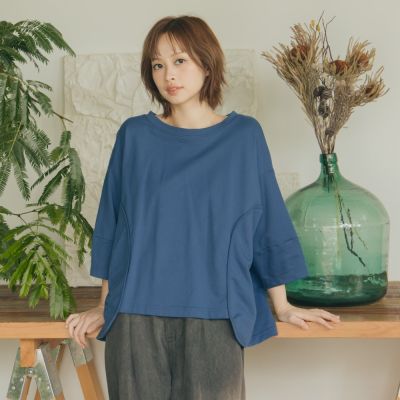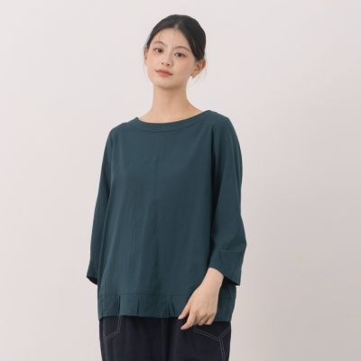 【MOSS CLUB】抓皺下襬圓領上衣(藍 白 綠/魅力商品)
