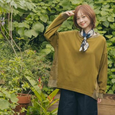 【MOSS CLUB】蕾絲拼接後開衩連袖上衣 黑 綠