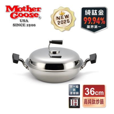 【美國MotherGoose鵝媽媽 】晶鑽輕量節能 無塗層物理不沾雙耳炒鍋36cm