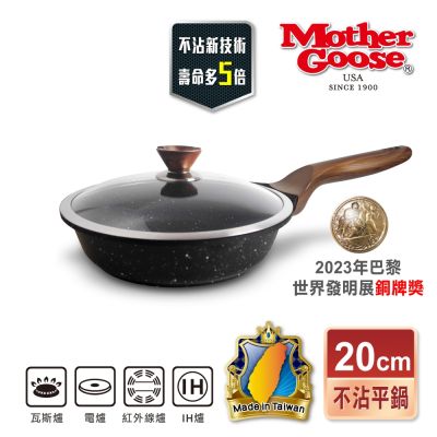 【美國MotherGoose 鵝媽媽】皮克超銀石 IH導磁不沾鍋深平鍋20cm