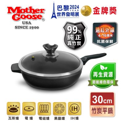 【美國MotherGoose鵝媽媽 】皮克超銀石 IH導磁不沾深平鍋30cm