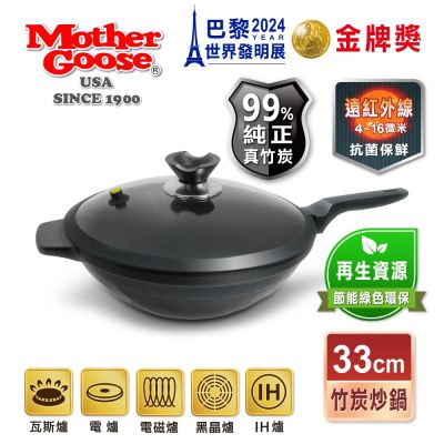 【美國MotherGoose鵝媽媽 】晶鑽輕量節能 無塗層物理不沾炒鍋33cm