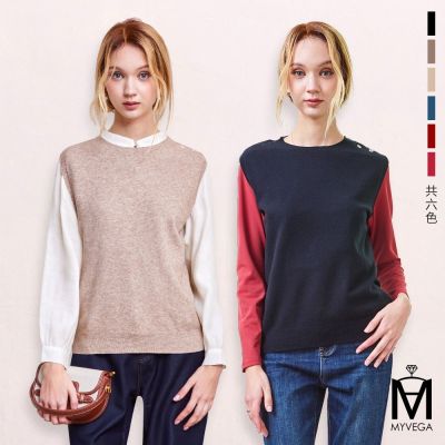 MYVEGA麥雪爾 撞色假兩件雙向拉鍊針織上衣-共三色$1,66589折