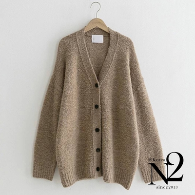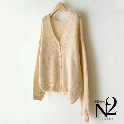 外套 正韓大V開口落肩設計寬版針織長袖外套(鵝黃)N2$1,590