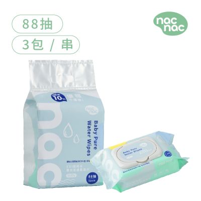 【nac nac】EDI嬰兒潔膚柔濕巾 附蓋88抽 X 3包(純水溼紙巾/嬰兒柔膚巾)