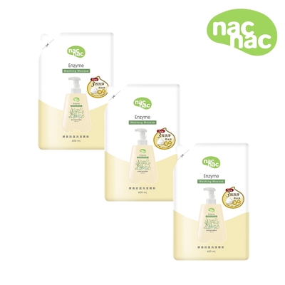 【nac nac】酵素奶瓶蔬果洗潔慕斯補充包600mlx3包(奶瓶玩具清潔/蔬果清潔)