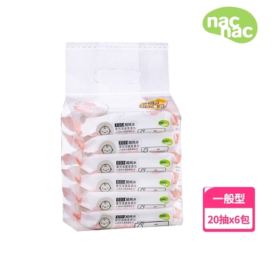 【nac nac】EDI超純水嬰兒潔膚柔濕巾20抽*6入(純水溼紙巾/嬰兒柔膚巾)
