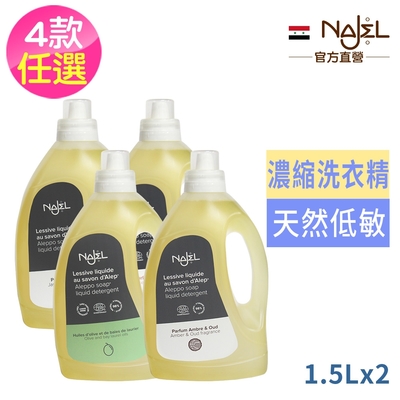 法國NAJEL阿勒坡皂天然低敏濃縮洗衣精1.5L(迴流蓋)-橄欖原味/玫瑰/茉莉/木質沉香四款任選2瓶$1,269$1,380