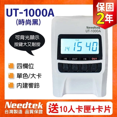 【贈100張考勤卡+10人卡架】Needtek優利達 UT-1000A (黑) 四欄位微電腦打卡鐘