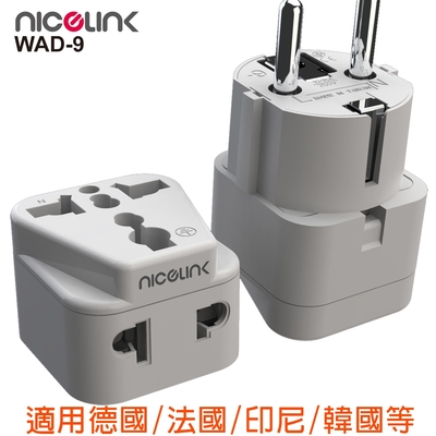 【NICELINK 耐司林克】區域型 旅行轉接頭 雙插座款 單入裝(擴充座/適用韓國/德國/法國/印尼 WAD-9)$139
