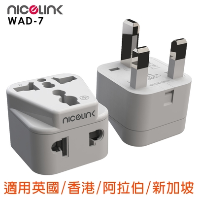 【NICELINK 耐司林克】區域型 旅行轉接頭 雙插座款 單入裝(擴充座/適用英國/香港/阿拉伯/新加坡 WAD-7)$139