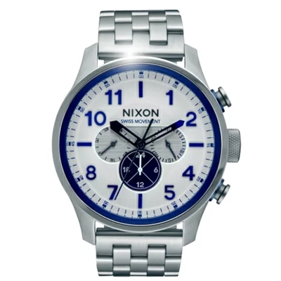 NIXON The 51-30 CHRONO 潛龍諜影運動腕錶-鋼帶-銀-NXA0831033