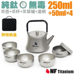 【North Field】安全無毒純鈦泡茶具-茶壺250ml+鈦杯子50ml*4套裝組_NF-3923