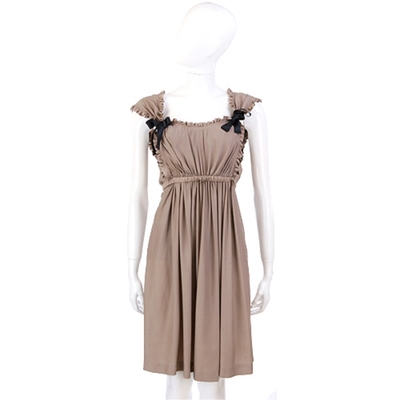 PAOLA FRANI 卡其色皺褶蝴蝶結飾洋裝