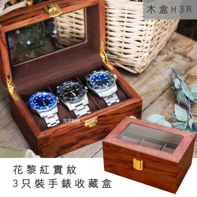 花黎紅實木紋3只裝手錶收藏盒(木H3R)