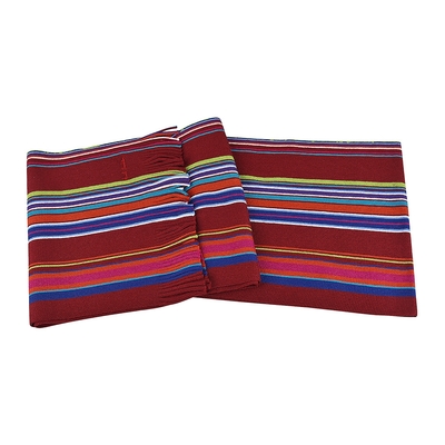 PAUL SMITH刺繡草寫LOGO彩色條紋針織羊毛流蘇圍巾(酒紅x彩色條紋)