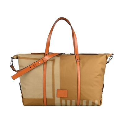 PAUL SMITH浮雕皮標LOGO雙拉鍊頭設計棉質帆布搭小牛皮飾邊拉鍊手提斜背包(卡其x淺干邑棕)