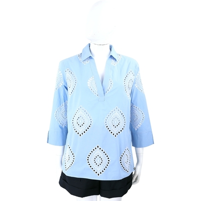 PENNYBLACK NOBILTA 簍空刺繡純棉水藍色七分袖上衣