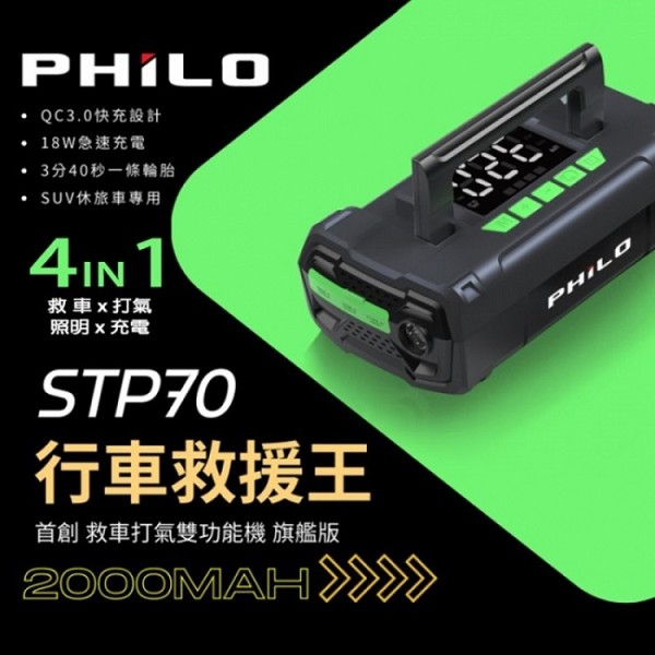 【PHILO 飛樂】STP70 行車救援王 首創 救車 X 打氣多功能機_旗艦版(車麗屋)