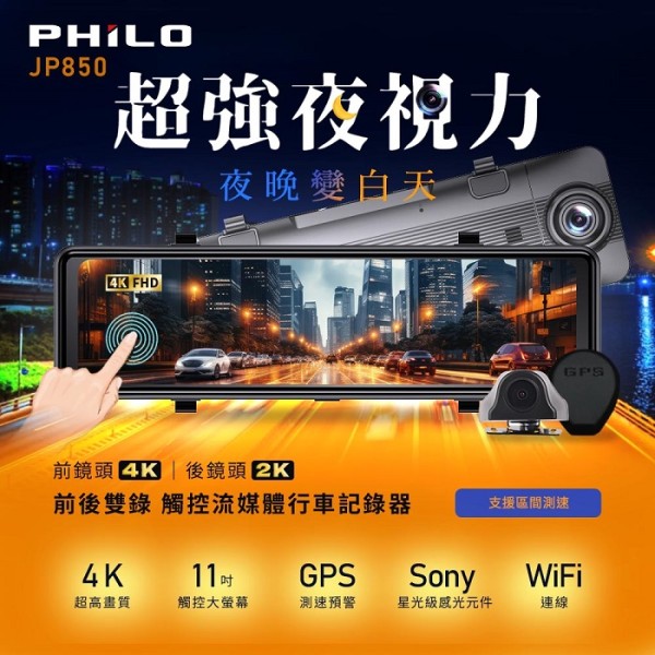 【PHILO飛樂】DVR電子後視鏡 前4K後1K 送安裝(車麗屋)