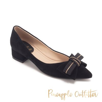 Pineapple-Outfitter-PEGGY-2 氣質蝴蝶結尖頭低跟鞋-絨黑色