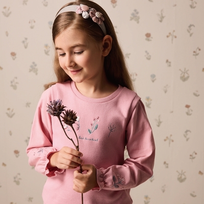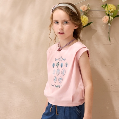 券PIPPY森林系靜雅幽香花園刺繡活褶短袖上衣 粉