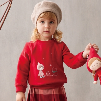 PIPPY小紅帽森林聚會純棉毛絨圓領長袖上衣 紅$936