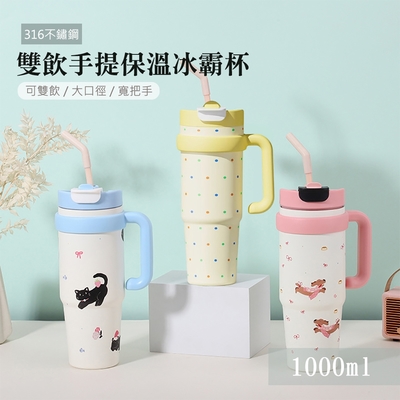 QHL酷奇 316不鏽鋼雙飲手提保溫冰霸杯-1000ml$499