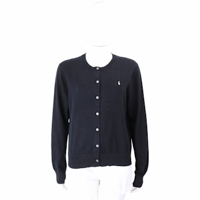 Polo Ralph Lauren RL 熱銷圓領刺繡小馬針織開襟外套(女)-黑色