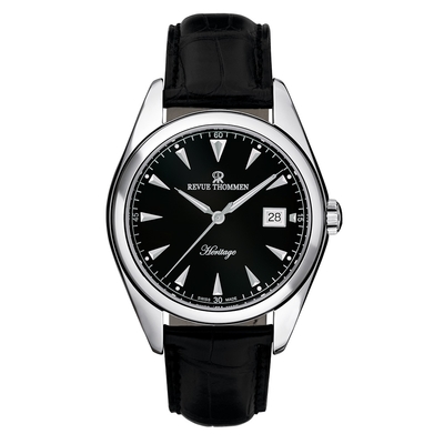 REVUE THOMMEN 梭曼錶 Heritage系列 自動機械腕錶 黑面x皮帶/41mm (21010.2537)