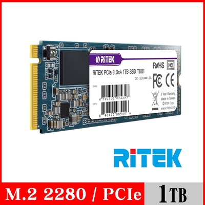 RITEK錸德 T801 1TB M2 2280/PCI-E SSD固態硬碟$2,588