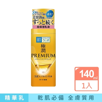 日本ROHTO樂敦-HADALABO肌研極潤金緻7重玻尿酸高效保濕潤澤特濃精華乳液140ml/金瓶(Premium臉部肌膚護理乳霜,素顏保養乾肌水凝乳)$88489折