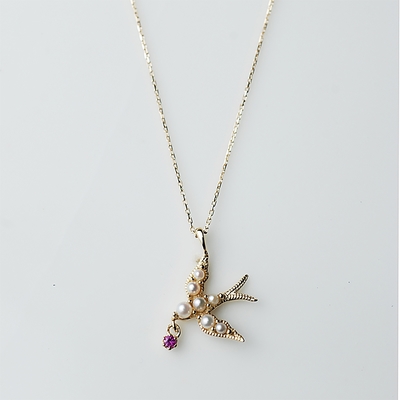ROKUZAN 叼紅寶珍珠小鳥K金項鍊$7,65486折