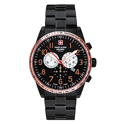 阿爾卑斯軍錶S.A.M 狂蜂系列-大黃蜂/黑色不鏽鋼鍊帶/玫瑰金錶圈/三眼計時/45mm