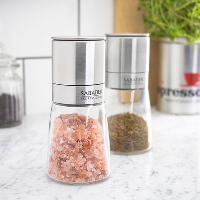 《Sabatier》附蓋陶刀研磨罐2入-透14cm-- 調味瓶