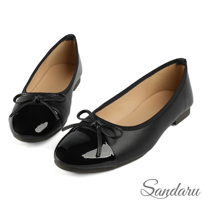 山打努SANDARU-娃娃鞋 真皮珍珠鑽蝴蝶結平底鞋-黑
