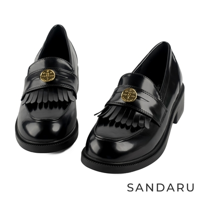 山打努SANDARU-樂福鞋 輕奢英倫風金幣流蘇牛津鞋-黑