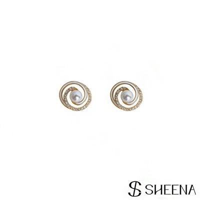 SHEENA 螺旋珍珠鋯石耳環-金$674$898