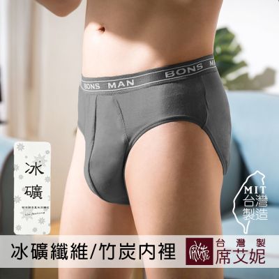 席艾妮SHIANEY 台灣製造 男性 冰礦纖維 竹炭內裏 三角內褲 (灰)$138