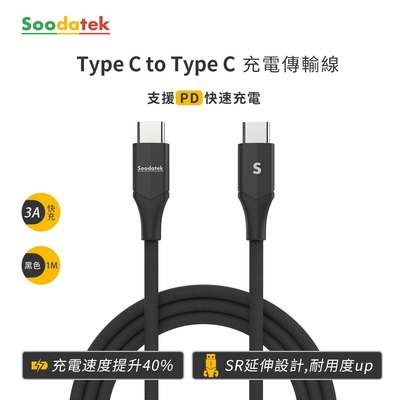 Soodatek Type C to Type C充電傳輸線1M/黑$149