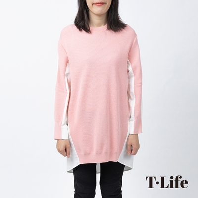 T.Life 簡約時尚異素材拼接長版針織上衣(3色)