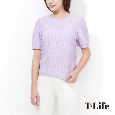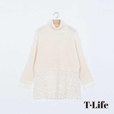 T.Life 甜美知性針織蕾絲拼接針織上衣(2色)