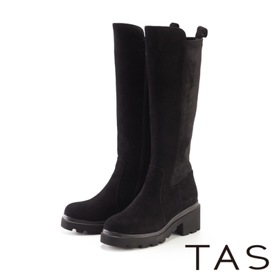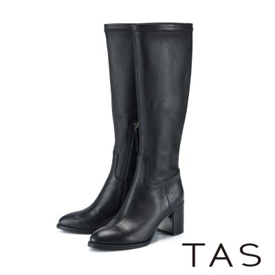 TAS 彈力羊皮顯瘦貼腿粗高跟長靴 黑色