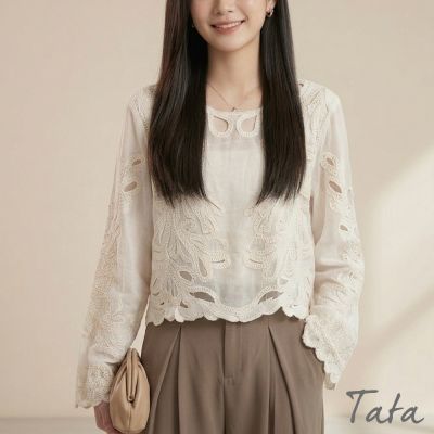 TATA 針織鏤空珍珠扣長袖外套-F$668