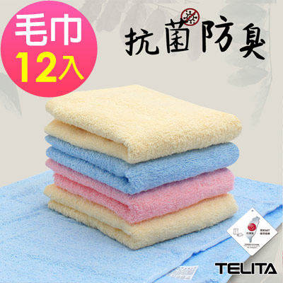 【TELITA】(12條組)素色抗菌防臭毛巾組$549
