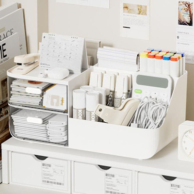 - 桌面分隔置物收納盒TengYue 無印風桌面文具收納盒-分隔抽屜款 共2色 筆筒$32883折挑戰低價