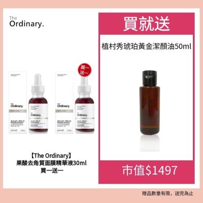 The Ordinary 果酸去角質面膜精華液 30ml 買一送一送植村秀琥珀黃金潔顏油50ml$1,42785折