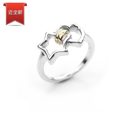 二手品 Tiffany&Co. 蒂芙尼 愛心蝴蝶結18K黃金+925純銀戒指