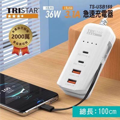 TRISTAR 36W急速充電器 TS-USB169|2孔PD 2孔USB