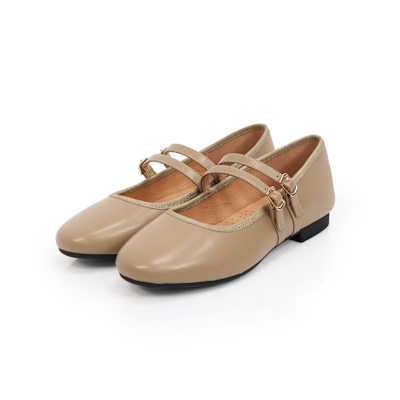 viina雙細帶全真皮平底瑪莉珍鞋-杏